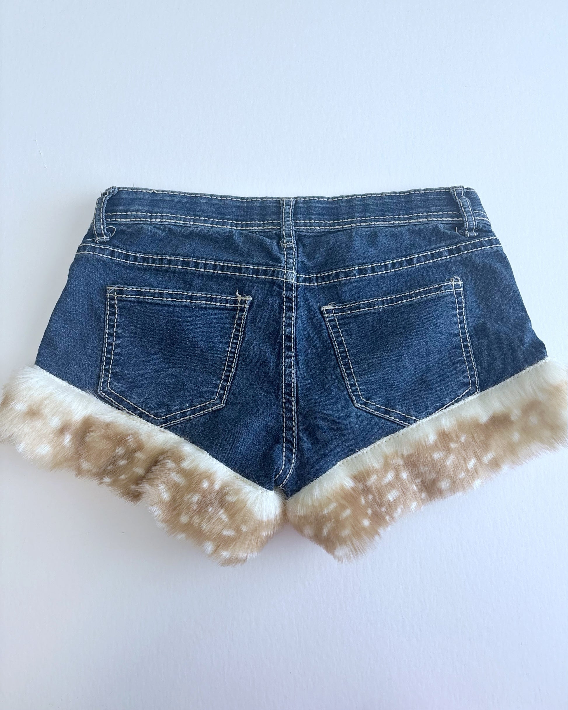 ♡ One-of-a-kind polka dot denim shorts with soft deer fur trim