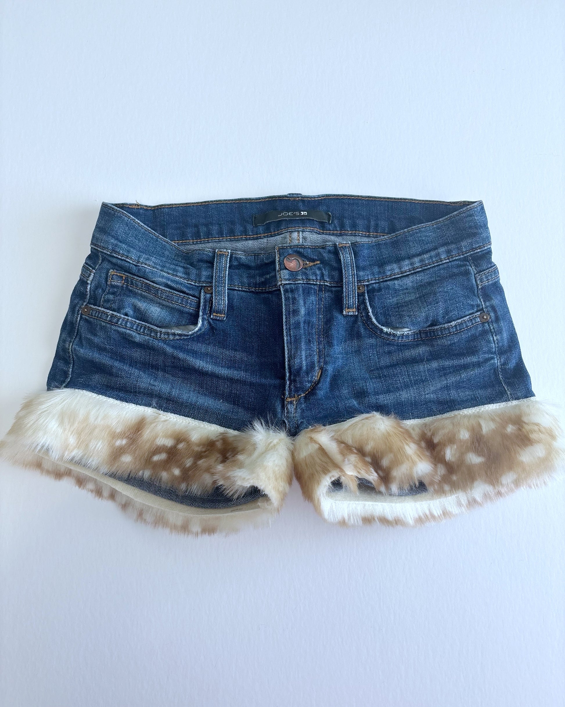 ♡ One-of-a-kind denim shorts with soft deer fur trim